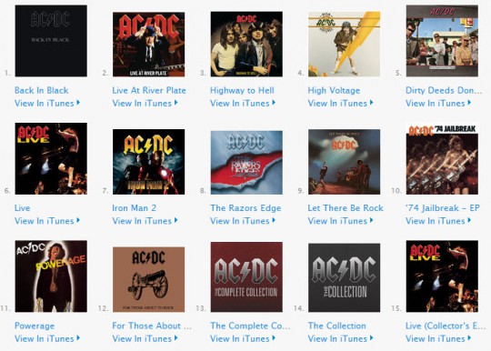 Классические альбомы группы, включая “Back in Black” и “Highway to Hell” можно купить за $9.99 каждый, в то время как прорывный альбом “High Voltage”, сведенный специально для iTunes, стоит $14.99.