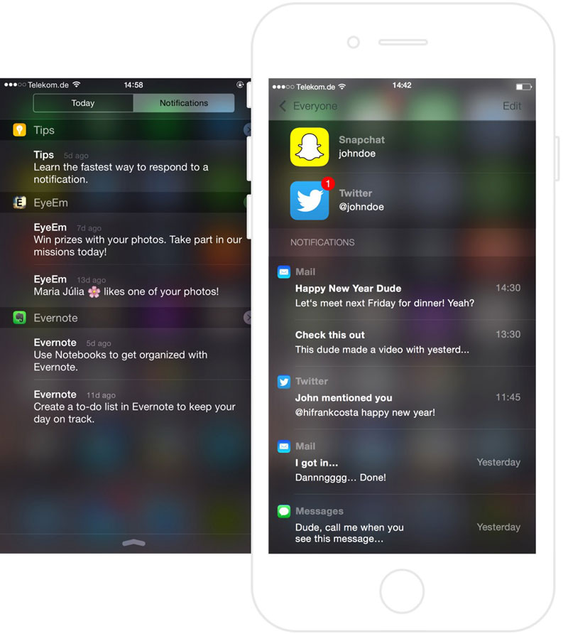 Кроме того, в карточке имеется список связанных с определенным абонентом уведомлений. Объединяющим фактором во всем этом предложен Apple ID. Быстрый доступ осуществляется через пустующую панель Spotlight.
