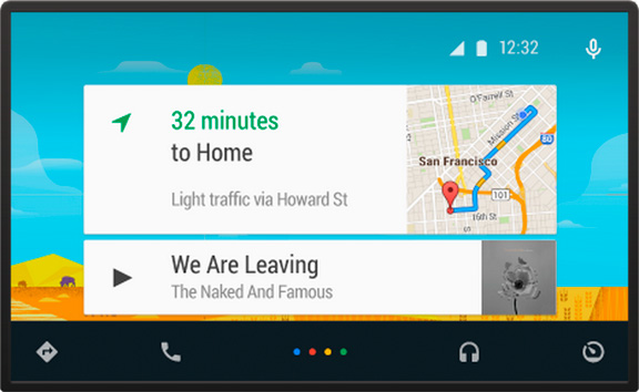 Как и Apple CarPlay, система от Google позволяет водителям управлять мультимедийным контентом, не отвлекаясь от дороги. Разработчики акцентируют внимание на простом графическом интерфейсе. Система напоминает оболочку Google для мобильных устройств. Пользователям доступны кнопки для доступ к домашнему, навигации, телефонному, музыке и заданному самим юзером разделу.