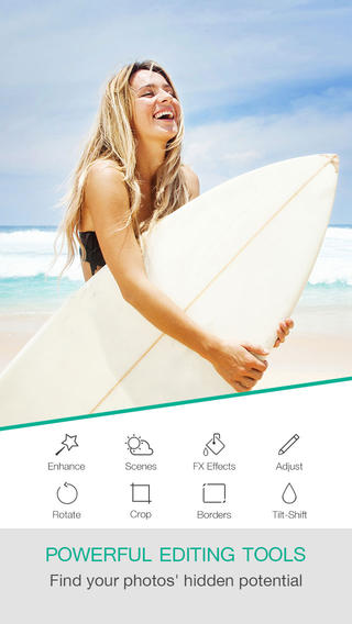 Приложение Fotor позволяет работать с изображениями, создавать коллажи, использовать различные эффекты, рамки, накладывать текст и т.д. Этот бесплатный многофункциональный редактор превратит ваш i-гаджет в настоящую фотостудию.