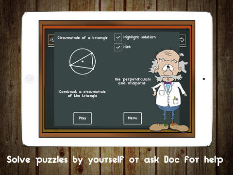 Дальше игрока ждет евклидова геометрия — построение окружности внутри и вокруг треугольника, нахождение центра окружности и т. д. Если в процессе возникают непреодолимые трудности, лучше всего воспользоваться подсказками. Есть возможность посмотреть, каким будет финальный результат, а также, какие элементы нужно использовать, чтоы добиться результата.
