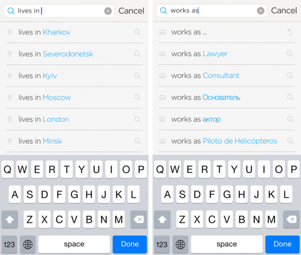 Функция поиска реализуется при помощи подключенных на первом этапе работы аккаунтов. Поиск позволяет найти контакт по «сопутствующей» информации. Например, если вы не помните как зовут человека, но точно знаете, что он живет в городе N. Поиск выдаст вам все контакты, у которых город N указан как место проживания.