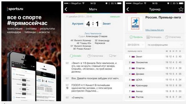 Приложение открывает доступ к обзорам профессионалов, авторским колонкам болельщиков, тематическим фотоотчетам, последним новостям, фанатским форумам. Достаточно удобный интерфейс и хороший дизайн, но есть внутренняя реклама.
