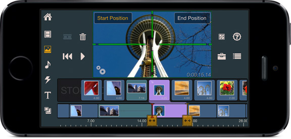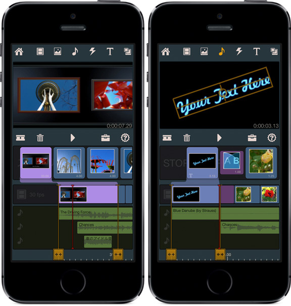 Дизайн видеоредактора достаточно простой. Для работы достаточно забросить видео и фото на временную шкалу, разместить в необходимой последовательности, добавить титры, переходы, музыкальное оформление и т.д. Приложение позволяет редактировать и сами видеоролики и музыкальные дорожки, обрезая неудавшиеся моменты.