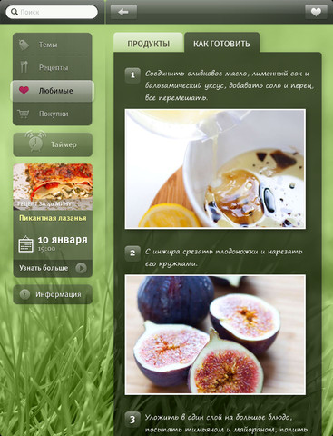 За плату $4,99 доступна база из 1000 рецептов, к большинству из которых прилагается видеоинструкция.