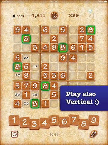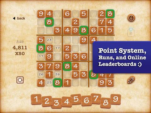 Разработчики использовали классическое судоку, добавив в игру умную рейтинговую систему, возможность делиться достижениями с друзьями и другими пользователями в Game Center.