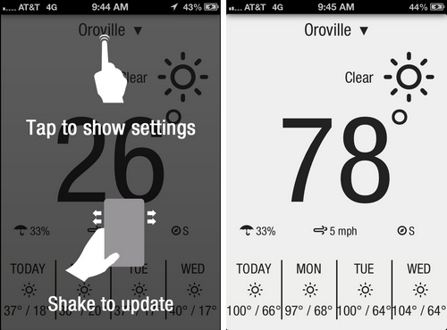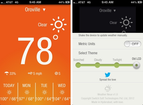 Weather Neue – минималистическое погодное приложение. Вся информация выведена на главный экран: температура, влажность, общее состояние погоды, а также сила и направление ветра, вот и все, что отображает Weather Neue.
