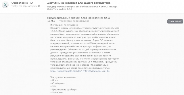 Apple представила новую бета-версию OS X Mavericks 10.9.2, доступную для загрузки в Центре разработчиков и через Mac App Store Update. Билд под номером 13С44 вновь рекомендует разработчикам обратить внимание на оптимизацию Mail, Сообщений, VPN, графических драйверов и Voice Over.
