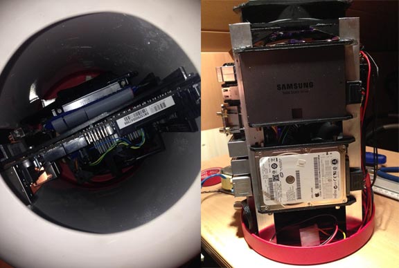 Шутки по поводу того, что новый Mac Pro выглядит, как корзина для мусора, уже никого не удивляют. А вот сборка компьютера из обычной мусорной корзины – может вызвать недоумение. Немец под ником Dschijn решил собрать себе свой Mac Pro. Главным элементом корпуса стала обычная мусорная корзина Authenics Lunar.
