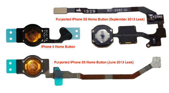 Французское издание Nowhereelse раздобыло изображения кнопки Home в новом смартфоне iPhone 5S. Как известно, новинка получит сканер отпечатков пальцев, интегрированный в эту кнопку.