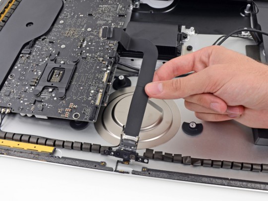 Во-первых, Apple приклеила крепления экрана, которые раньше держались на магнитах. Что-то подобное используется и в iPad. То есть для того, чтобы попасть внутрь компьютера, вам будут необходимы фен и мастерство ниндзя. Стекло и LCD крепко приклеены к раме iMac и если вы случайно разобьете в процессе стекло, вам придется заменять и LCD.
