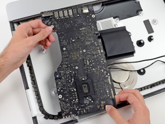 Если вам все же посчастливиться забраться внутрь вашего нового iMac, немалые усилия придется приложить, чтобы произвести такую незначительную процедуру, как замена оперативной памяти, потому что она надежно спрятана под логической платой.