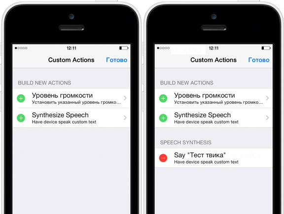 Новая версия твика под номером 1.8.4 beta 11 получила опцию Synthesize Speech, которую можно включить из настроек. После включения опции пользователь сможет задать фразу, которую будет произносить роботизированный голос гаджета. Таким образом, назначается любой жест или действие на проговаривание голосом определенной фразы или предложения. Синтезирование речи работает на английском и русском языке.