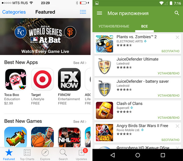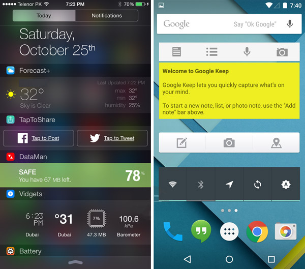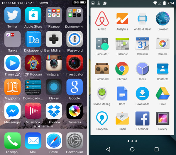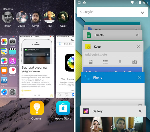 Сравнение дизайна iOS 8.1 и Android 5.0 Lollipop