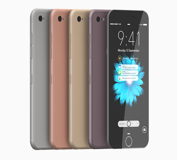 Голландский дизайнер Яассер Фарахи представил концепт iPhone 7 с 5 Гб оперативной памяти, представленный в черном, оранжевом, золотистом, фиолетовом и серебристом цветах.
